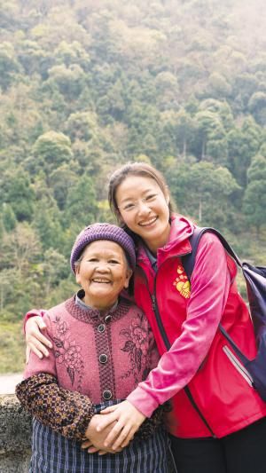 饰演黄文秀的演员郎月婷(右)与在影片中饰演配角的村民老奶奶在一起。