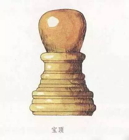 在建筑物的顶部中心位置,尤其是攒尖式屋顶的顶尖处,往往立有一个圆形或近似圆形之类的装饰,它被称为宝顶。在一些等级较高的建筑中,或者确切地说,在皇家建筑中,宝顶大多为铜质鎏金材料制成,光彩夺目。