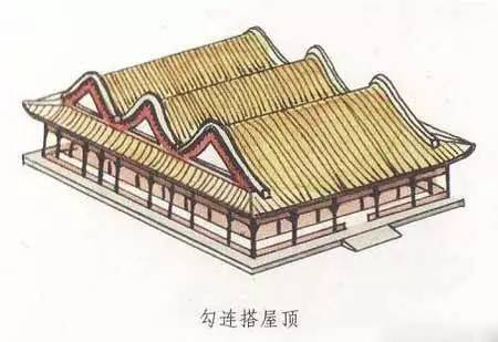 勾连搭屋顶就是两个或两个以上屋顶,相连成为一个屋顶,但看起来还是两个或两个以上屋顶,只是每个屋顶之间是连在一起的。这样的屋顶形式,可以在建筑下部形象不变的情况下,使上部屋顶更富有变化,更为生动多姿。另外,也在不提高屋面整体高度的情况下,扩大室内空间。