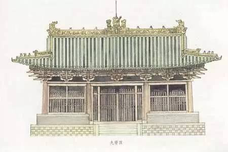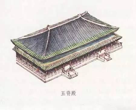 庑殿和歇山一样是清式说法,在此之前它又有五脊殿等名称。因为庑殿式屋顶上共有五条脊,即,一条正脊和四条垂脊,所以称为五脊殿。