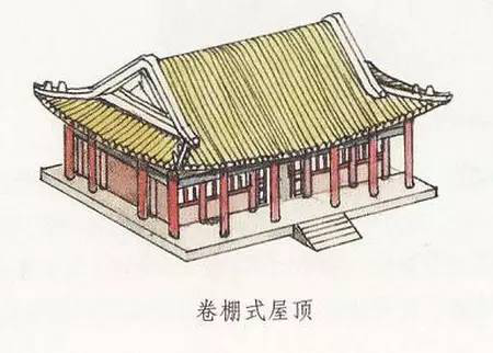 卷棚式屋顶也称元宝脊,其屋顶前后相连处不做成屋脊而做成弧线形的曲面,也就是说卷棚式屋顶的正脊是弧形,与普通的人字形屋顶不一样,没有屋顶端的正脊。譬如北京颐和园中的谐趣园,屋顶的形式全部为卷棚式屋顶。