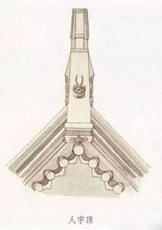 建筑的屋顶分为前后两面坡,两坡上端在屋脊处相交,形成建筑屋顶的正脊。这种两面坡屋顶从山墙立面看,其屋顶的形象就像是一个“人”字,所以把这种屋顶形式叫做人字顶。人字顶是一般住宅较常用的屋顶形式,硬山顶、悬山顶都属于人字顶。