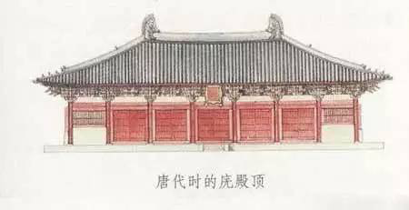 根据资料与记载,庑殿顶屋顶早在殷商时代就已出现。不过,现在对唐代中期以前的庑殿式屋顶的具体结构已无从得知,晚唐以后渐有实例可查。其形象是屋面平缓,正脊较短。正脊两端为鸱尾而不是鸱首。