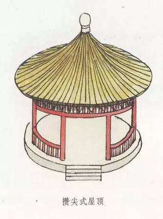攒尖式屋顶没有正脊,而只有垂脊,垂脊的多少根据实际建筑需要而定,一般双数的居多,而单数的较少。如,有三条脊的、有四条脊的、有六条脊的、有八条脊的,分别称为三角攒尖顶、四角攒尖顶、六角攒尖顶、八角攒尖顶等。此外,还有一种圆形攒尖顶式,也就是没有垂脊。
