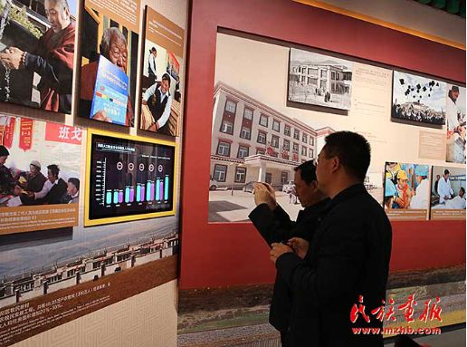 观众用手机记录反映西藏变化的各种图表和数据