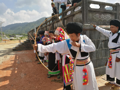 弩弓射击在傈僳族的采集和狩猎在其经济生活中占有重要地位,“刀耕火种”、“射猎为生”,农猎并举。因此而练就弩弓之技,以善用弩弓和射技精而闻名。清乾隆《姚州志》载其“技善弩,经年以射猎为事”。傈僳族弩弓历史悠久,明天启《滇志》卷三十说:傈僳族“善用弩,发无虚失,每令其妇负小木盾经之,四寸者前行,自后发失其盾.而妇无伤,”弩弓制作精良,弩扁担(弓背)用岩桑制成,用栗木或柘木做弩身。大弩的弓背长 110 厘米,射程 150 米左右.小弩弓背 70 至 90 厘米,射程 50 至 100 米左右,弩箭用雪山实心竹制成,配尾羽,分有毒无毒两种。毒汁用野生药熬成,素有见血封喉之称。清代《维西见闻录》载:“药矢弩所用也,矢及鏃皆削竹而成,扎篾为翎,鏃沾水裹药,药采乌头,曝而研末者,猎中禽兽入皮肤,飞者昏而坠,走者麻木而僵.”
