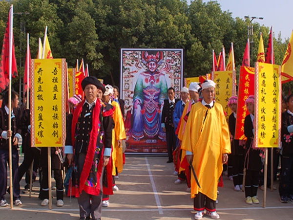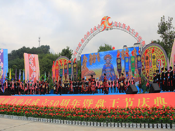 每年的农历十月十六日,瑶族男女老少都要穿上自己民族的节日盛装,聚居在一起唱歌、跳舞,欢度盘王节。