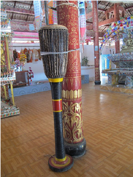 安放在寺庙里的长象脚鼓(云南省孟连县曼沙龙村)