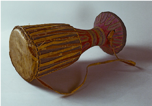 象脚鼓傣语称“光酣咬”,意为长尾巴鼓,简称长鼓,是傣族的重要民间乐器,因其形似大象的脚而得名。象脚鼓有报信、伴奏功能,多见于以象脚鼓为核心的舞蹈形式。傣族人把象脚鼓称为“滚熬”,意为“人的影子”。在傣族的传统节日、赶摆、庆丰收、娶亲嫁女、新房落成、迎接宾客等民间节日和佛教仪式活动中都要敲响象脚鼓、跳象脚鼓舞,象脚鼓的应用是傣族日常生活当中不可或缺的重要文化事项。河谷地带傣族聚居的各村寨都盛行跳象脚鼓舞,每个傣族村寨都有象脚鼓,民间流传“没有鼓的寨子,人家会笑话”、“打一下鼓,秧苗长一截,谷子饱满一截”等谚语。