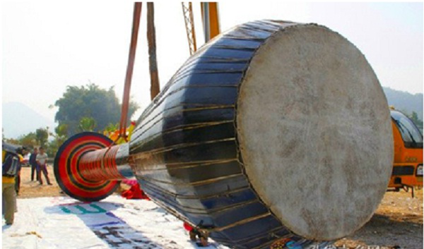 云南德宏盈江县制作的象脚鼓,创世界最大象脚鼓世界纪录