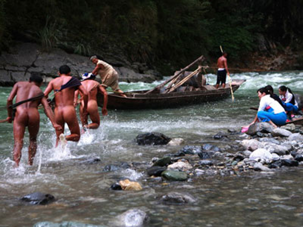 漂流神农溪,乘坐的是一种俗称“豌豆角”的木舟,这种木舟为神农溪所独有,是目前世界仅存的三大水上原始交通工具之一。