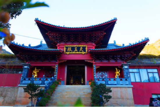 慧灯庵背靠迦叶殿。明万历三十三年,僧人洪平在此结茅庵修行,后经多次重修,上世纪60年代被毁。现在的慧灯庵,是1983年重建的,面积约930多平方米。寺内大雄宝殿为五间单檐歇山式,四角钻尖宫殿型。殿中佛龛上供奉释迦牟尼佛,两旁为达摩和伽蓝菩萨。塑像身帖金箔,熠熠生辉,耀眼庄严。