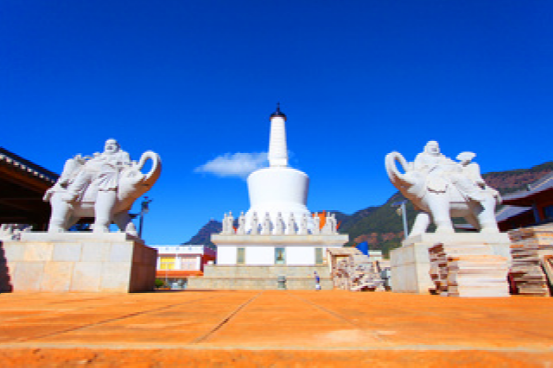 佛塔寺,位于鸡足山左支文笔峰尽头,驻足其间昂首环视全山,绿树丛中,梵宫林立,金碧辉煌;青崖之上,彩亭翼然,画阁参差,恰似一幅天然画卷。佛塔寺原名尊胜塔院,因院内有著名的尊胜白塔而得名。因其所在的位置与塔盘山相邻,又叫塔盘寺。佛塔寺最初建于明崇祯十一年,上世纪60年代被毁。1991年,台湾比丘尼道兴法师捐建。佛塔寺主要建筑有:三圣殿、大雄宝殿、万姓祖先堂、尊胜白塔等。院内有塔院秋月、望乡台等包含佛教文化内涵的自然景观。
