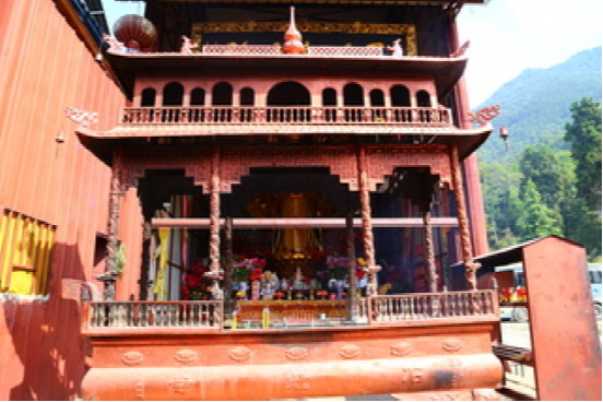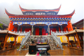 铜瓦殿,位于猢狲梯下,原名迦叶寺、铜佛殿、传灯寺。明正德年,僧人圆成与永胜土知州高世懋创建,建寺时因所在位置山高风烈,三秋干燥,严冬积雪,泥瓦易裂。为抵御风雪,保护殿堂建筑,于是冶铜为瓦,覆盖屋顶,因此又名铜瓦殿。上世纪被毁。1979年重建,1983年,被国务院批准为全国汉传佛教重点寺院。铜瓦殿虽地处危崖,庭院狭小,可是坐在殿堂的台阶上,就能赏千山秀色,观万壑松涛。