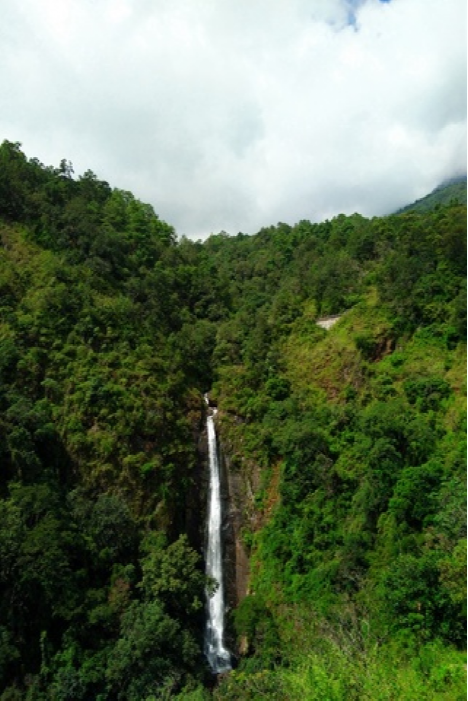 玉龙瀑布又称大龙湫,源自天柱峰金顶寺下海拔3100多米的龙王泉,流经仰高峡,纳滴雪崖、兜率庵石洞和真武洞三泉成三献水,穿林破雾,奔流而下,到达落差60米的滴水崖,界破青山,形成玉龙瀑布,这就是鸡足山著名的八景之一飞瀑穿云。徐霞客曾两次游览玉龙瀑布,认为玉龙瀑布与庐山瀑布同样美,不因其小而逊色。