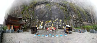 迦叶殿,坐落在鸡足山插屏山麓,天柱峰悬崖半腰。初名袈裟殿,古碣载:“周灵王七年,牟尼佛出世,其传衣在此”故名。唐天宝年间,迎供阿难亲手雕刻的檀香木迦叶像,于是更名为迦叶殿,被称为“山中第一寺”和“山中诸寺之祖庭”。原来的迦叶殿屡毁屡建,现在的迦叶殿是1992年由成都文殊院宽霖大和尚发起,弟子宏道法师主持重建。
